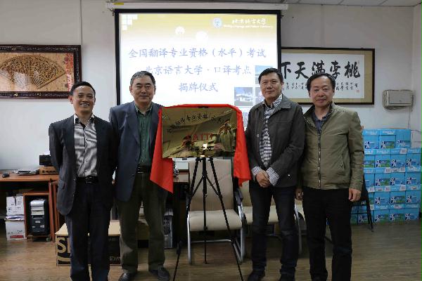 4月15日下午,人社部全国翻译专业资格(水平)考试(CATTI)北语考点揭牌仪式在教二楼247会议室举行。中国外文局考评中心副主任卢敏,国家外专局考试中心主任张弘应邀参加揭牌仪式,培训学院院长陈卫东,副院长童远鹏、孙亚鹏,出国事业部主任马晓明,专业教师代表,院办公室人员及考试中心人员参加了仪式。揭牌仪式前,双方就考试考务情况,专业培训等工作进行了具体交流、讨论。卢敏副主任介绍了考试的重要性及发展过程,并就北语举办翻译考试培训项目提出建议,张弘主任强调了考试工作的安全性和权威性,陈卫东院长代表培训学院欢迎该项考试落户北语,并将为考生提高一如既往的高质量培训、考试服务,双方表示就下一步考试考务及面向广大在校生考生的翻译资格考试培训进行专门讨论研究。揭牌仪式后,张弘主任为考试中心全体人员做了CATTI考试的专项考务培训,卢敏译审做了“如何成为一名合格的职业翻译——CATTI考生常见问题分析”专题翻译讲座,讲座现场座无虚席,广受欢迎,在问答环节,学生踊跃提问,时间一再推延。